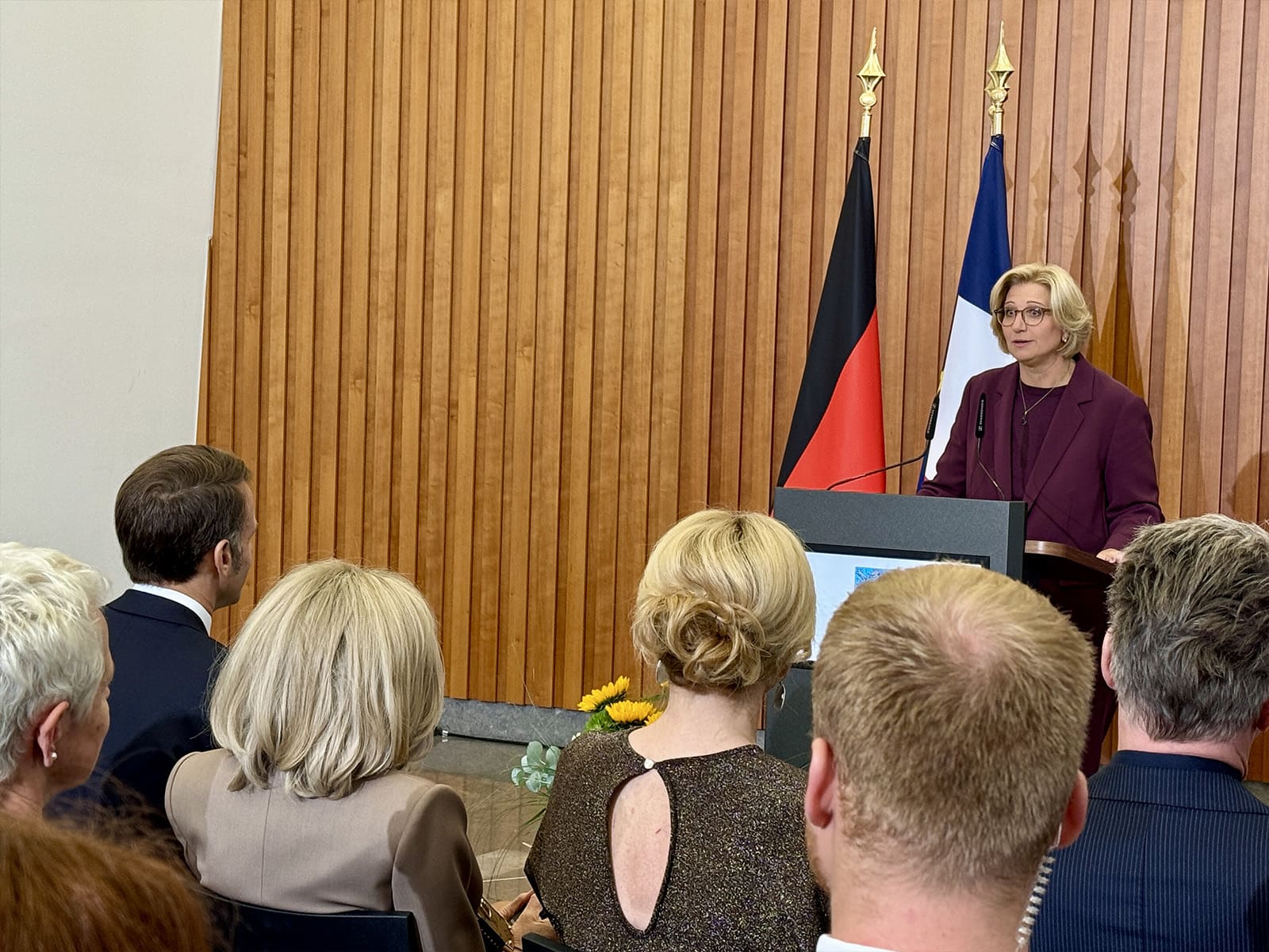 Le Président Emmanuel Macron a été le premier chef d’Etat étranger depuis 20 ans à célébrer la fête nationale sur le sol allemand. Il a prononcé un discours plein d’allant, en partie en allemand, en faveur de la coopération franco-allemande à l’invitation du président allemand Frank Walter Steinmeier et de la ministre présidente du Land de Sarre, Anke Rehlinger, également présidente de la conférence des Länder allemands, le Bundesrat, devant le  chancelier Friedrich Merz, la présidente du parlement Julia Klöckner, le président de la cour constitutionnelle Stephan Harbarth et des milliers d’officiels et invités venus nombreux pour l’occasion.